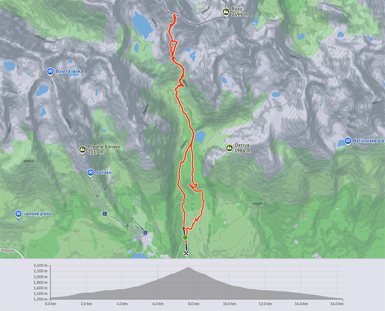 A to je skoro všetko, lebo k Popradskému už to išlo samo, a lepšie ako sme čakali cestou hore. Dalo sa všetko ubrzdiť alebo obísť. Aj cesta v pohode, až na záver, obrátený proti slnku, kvalitne odpluhovaný (snehové hrče na okrajoch) a vytopený na asfalt. Niekde ledva pásik na sklz po jednej lyži. Viacerí radšej vyzúvali, ale aj to sa dalo obkľučkovať cez kríky povedľa.