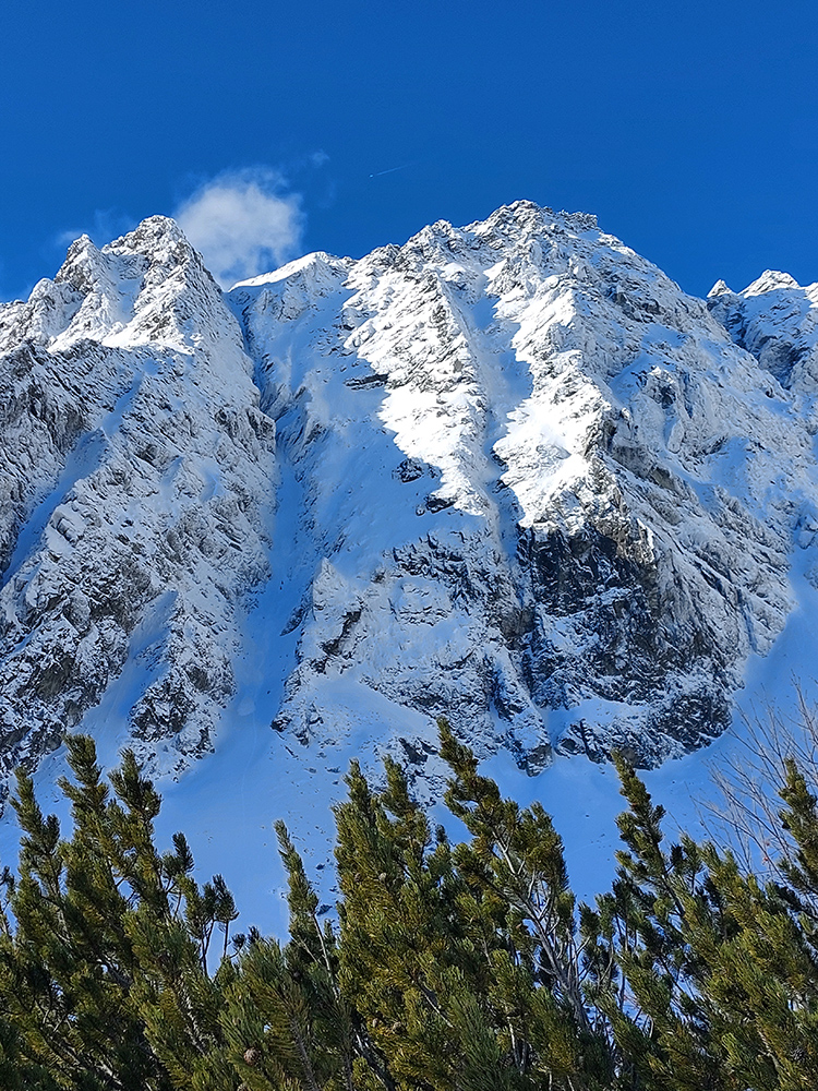 Vstup do Mengusovskej tiež snehová tragédia (zvykáme si, čo už), ale po ujazdenom a primrznutom to hore nevadilo a potom dole sa to tiež dalo risknúť a aj ubrzdiť alebo obísť, kde bolo treba. No hlavne – začali sa otvárať výhľady, ako tento na hrebeň Bášt: